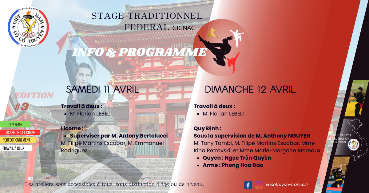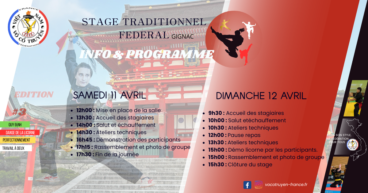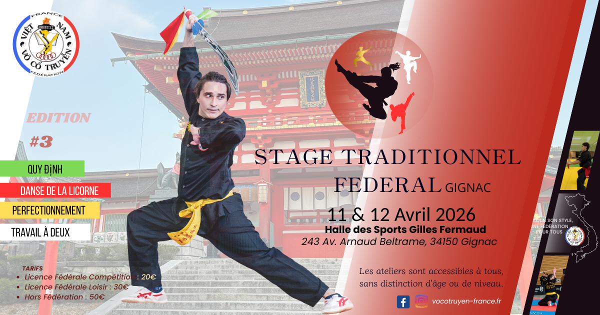 FVCTVNF : STAGE TRADITIONNEL FEDERAL #3 - 11/12 Avril 2026 - Gignac
