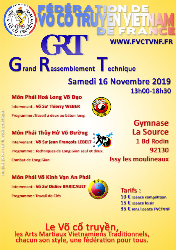 - Le Grand Rassemblement Technique des écoles a pour but, pour celles qui le souhaitent, de présenter leurs techniques à tous les pratiquants de la Fédération.