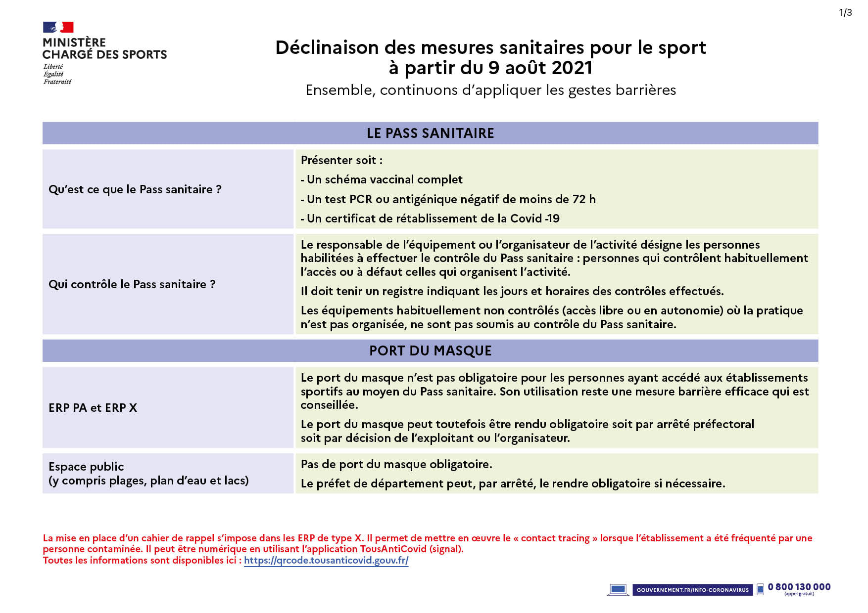 Veuillez trouver ci-dessous les dernières directives du gouvernement pour la pratique sportive.