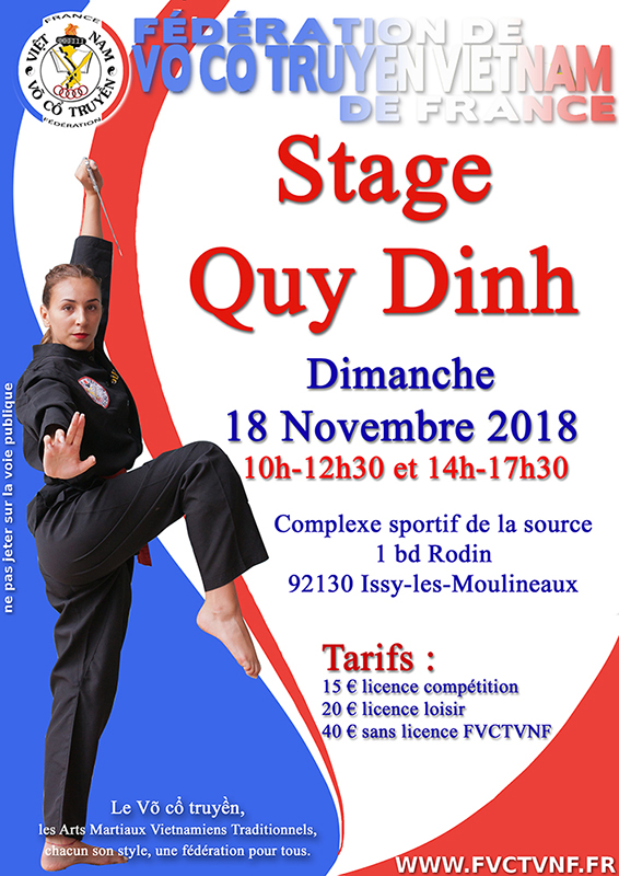 Le stage sera animé par les membres de la commission Quy Dinh, dont le responsable est M. Stéphane Lesoil.