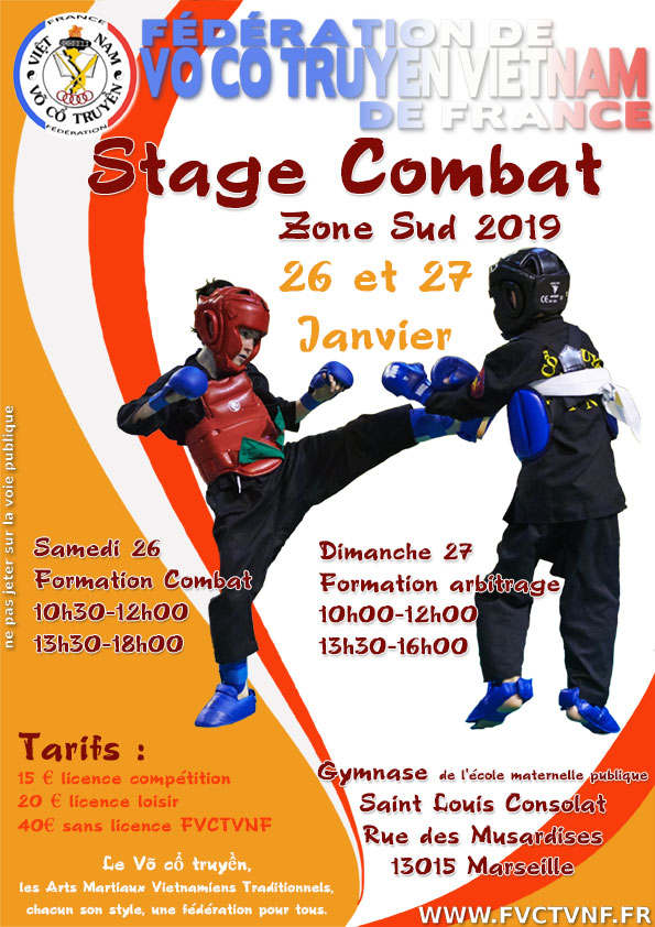 - Le Samedi 26 janvier : Formation Combat – Formation payante